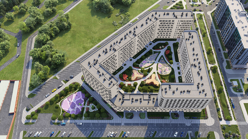 Новые дома объединит благоустроенный огороженный двор без автомобилей и подземный паркинг на 190 мест, где также расположатся келлеры для сезонных вещей и зона хранения велосипедов.