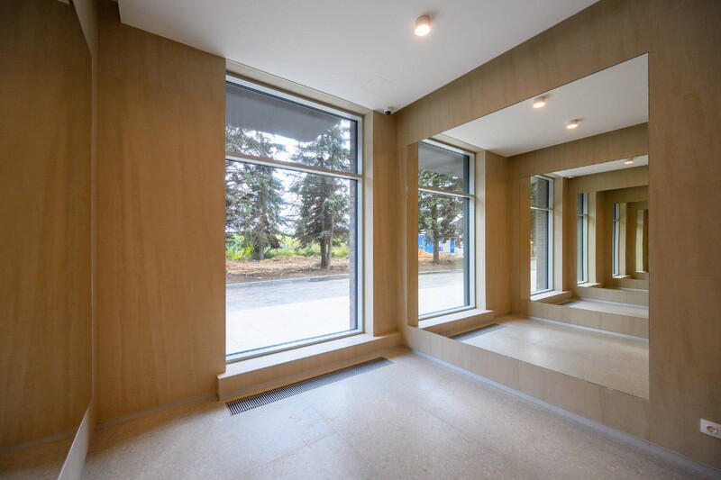 На прилегающей территории обустроили ландшафтные зоны, игровые и спортивные площадки, пешеходные маршруты, а также парковку, рассчитанную на 380 машино-мест.