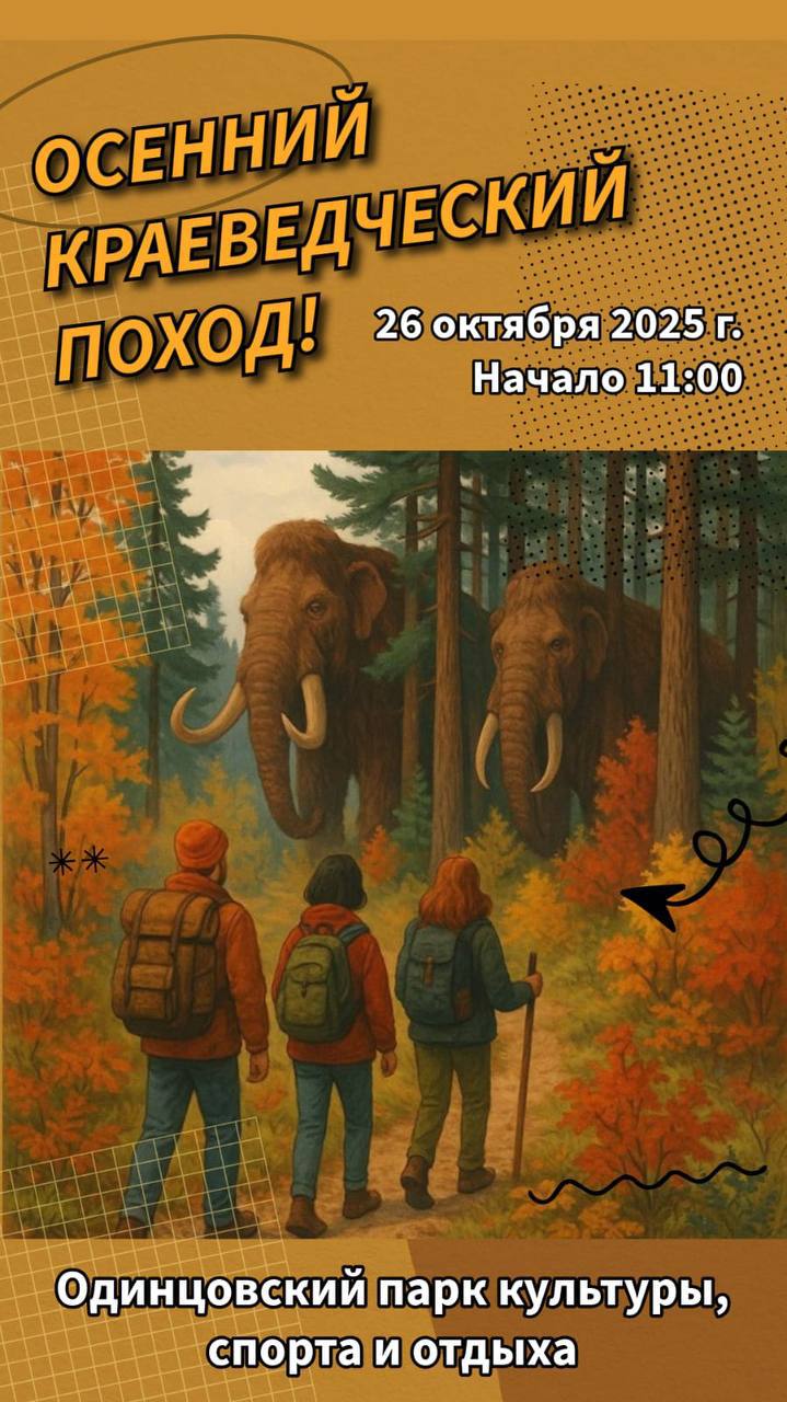 В воскресенье, 26 октября, в Одинцовском парке культуры, спорта и отдыха пройдет краеведческий поход длиной 5 километров. Сотрудник Краеведческого общества Николай Кузнецов проведёт экскурсию по интересным и малоизвестным уголкам природы и моментам истории.