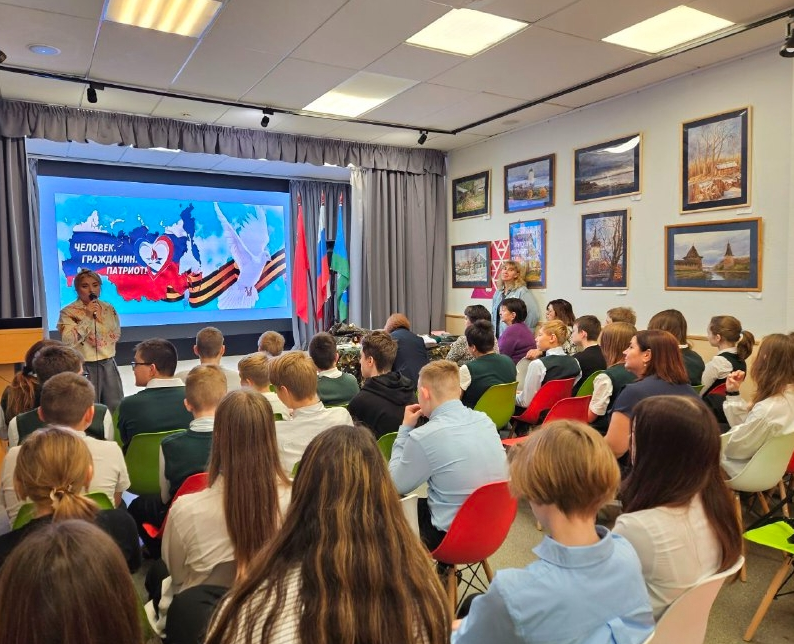 В городской Библиотеке № 1 прошёл урок мужества для учеников 7 «А» класса Одинцовского лицея № 2. Главный вопрос, на который постарались найти ответ участники мероприятия, звучал следующим образом: «Кто такой патриот?» В роли наставников выступали сотрудники библиотеки, ветераны и добровольцы из общества «Серебряные волонтёры».