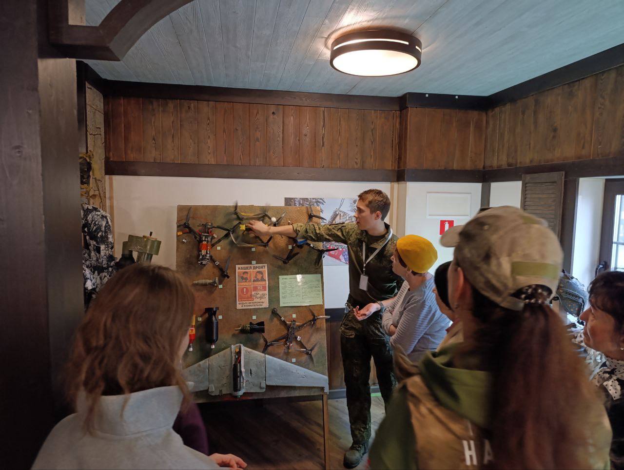 Для гостей мероприятия работали несколько интерактивных зон. Основная экспозиция состояла из 5 освещенных витрин, где были представлены подлинные предметы с мест боевых действий: снаряжение, символика и другие уникальные экспонаты. Каждый желающий мог прослушать подробный аудиогид, доступный по QR-коду. Зона современных технологий с большим стендом демонстрировала распространенные образцы БПЛА, а также макеты артиллерийских систем.