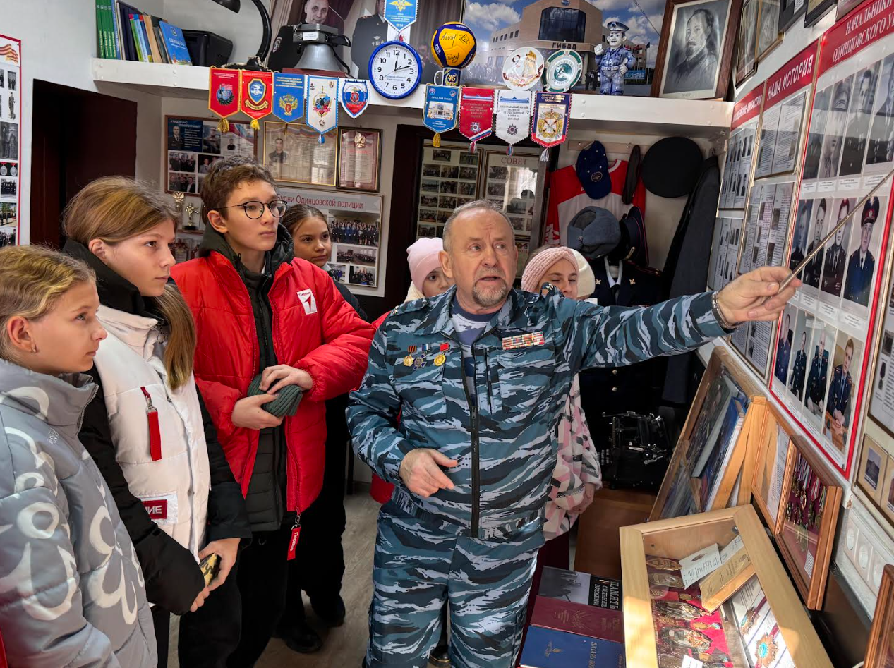 Участие в уроке принимали заместитель начальника Одинцовского УМВД полковник полиции Алексей Красников и председатель Совета ветеранов подполковник милиции в отставке Александр Тарасов. Ребята с огромным интересом познакомились с экспозицией музея, в котором выставлены образцы формы и документы, фотографии сотрудников управления, символика и другие уникальные экспонаты.