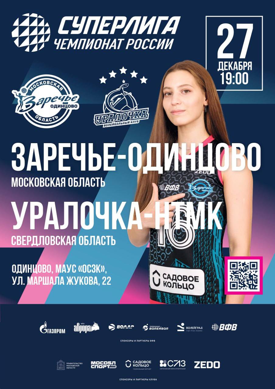 В субботу, 27 декабря, болельщиков волейбольного клуба «Заречье-Одинцово» приглашают на трибуны. Наши девушки принимают на своей площадке «Уралочку-НТМК» из Свердловской области. Сегодня соперницы находятся на соседних строчках в верхней части турнирной таблицы: «Заречье» идёт на 2-м месте, «Уралочка» — на 3-м.