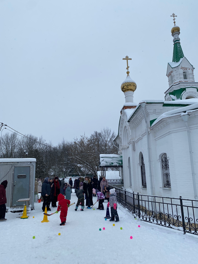 По окончании спектакля на улице детей ждали подготовленные преподавателями воскресной школы и родителями воспитанников весёлые игры и конкурсы с музыкой и подарками: ребята играли в снежки, перетягивали канат и участвовали в других забавах.