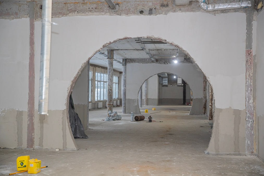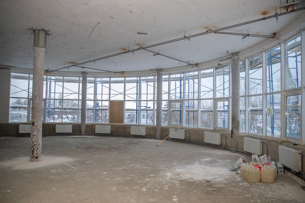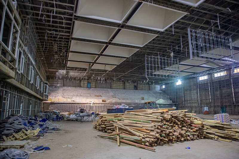 «На сегодняшний день выполнены все внутренние демонтажные работы, на завершающей стадии — укладка мягкой кровли, монтаж системы отопления и радиаторов, а также штукатурка. Кроме того, уже наполовину демонтирован фасад здания. Сейчас строители приступили к устройству бытовой канализации, в ближайшее время начнется монтаж системы электроснабжения, вентиляции, холодного и горячего водоснабжения. После модернизации здание превратится в современный многофункциональный комплекс общей площадью более 15 тысяч квадратных метров. Здесь будут проводить не только спортивные, но культурные мероприятия», — отметил глава муниципалитета Андрей Иванов.