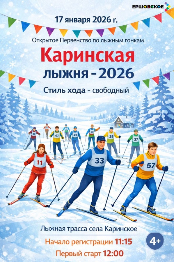 Открытое первенство по лыжным гонкам «Каринская лыжня — 2026» стартует в эту субботу, 17 января, в селе Каринское. Регистрация участников начнется в 11:15, а первый старт состоится в 12:00. Стиль хода — свободный. Зарегистрироваться можно прямо на месте.