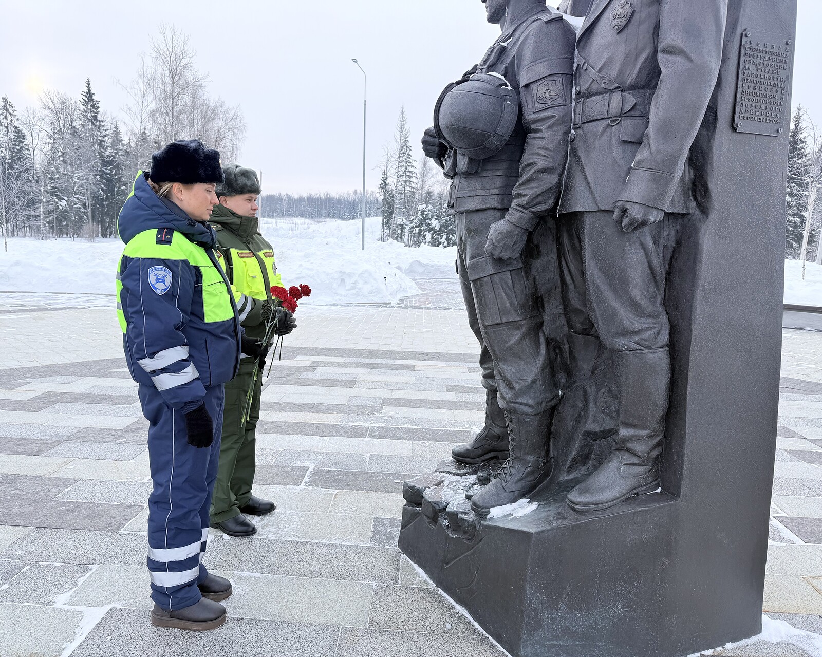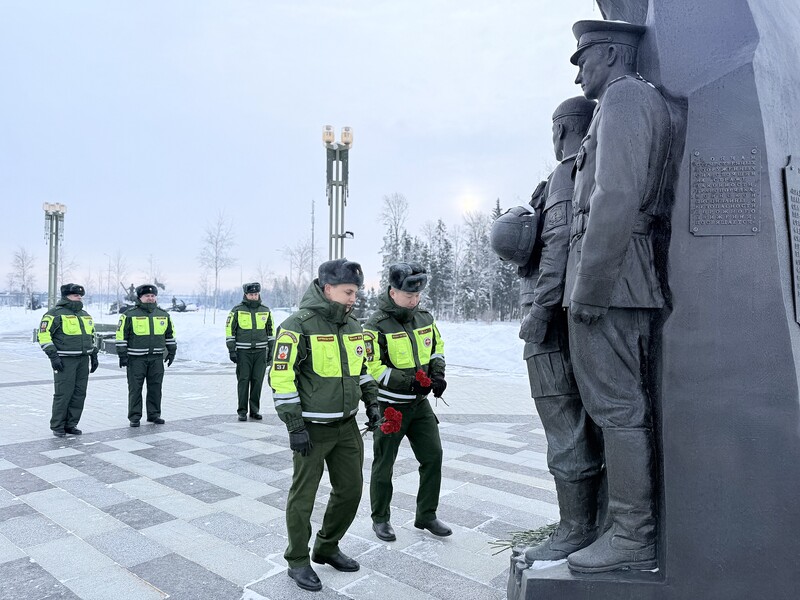 Участники акции возложили цветы к мемориальному знаку, почтив память коллег минутой молчания. Данное мероприятие направлено на сохранение исторической памяти, укрепление служебных традиций и патриотическое воспитание личного состава.