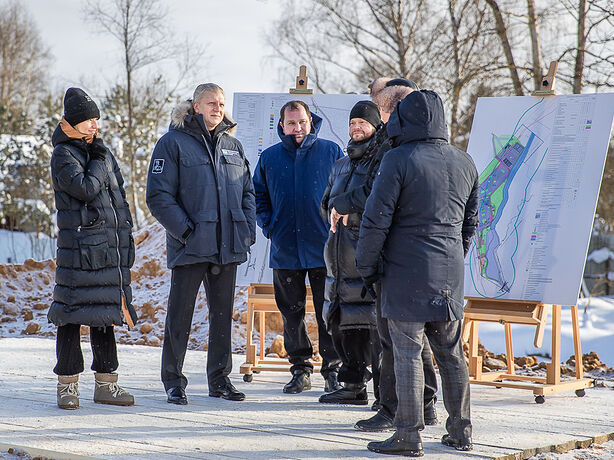 В парке Маслово Одинцовского округа продолжаются работы второго этапа благоустройства — он включает в себя обустройство парковки на 137 машиномест с освещением и видеонаблюдением, хозяйственного двора с теплыми ангарами для хранения техники, навесами и административным павильоном, а также установку туалетного модуля, зарядных станций для электромобилей, создание комнаты матери и ребенка. Ход работ на объекте во вторник, 10 февраля, проверил глава Одинцовского округа Андрей Иванов. Строительная готовность сейчас составляет порядка 60% — строители делают основание тротуара и парковки, возводят габионные стены и формируют русло ручья.