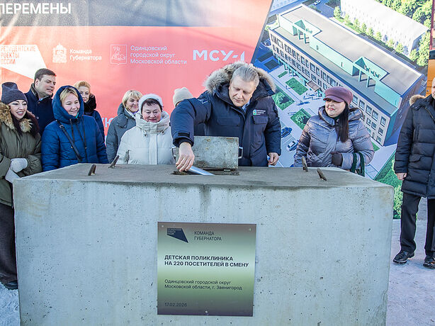 Во вторник, 17 февраля, глава Одинцовского округа Андрей Иванов вместе с жителями Звенигорода, первым заместителем председателя Мособлдумы Ларисой Лазутиной, депутатом Совета депутатов Одинцовского округа Ольгой Ермаковой и главным врачом Одинцовской областной больницы Иваном Каприным заложил капсулу времени в основание новой детской поликлиники. Современное медицинское учреждение на 220 посещений в смену возведут на Нахабинском шоссе за счет средств регионального бюджета — в рамках госпрограммы «Строительство и капитальный ремонт объектов социальной инфраструктуры Московской области» нацпроекта «Продолжительная и активная жизнь». Как сообщил глава Одинцовского округа Андрей Иванов, детская поликлиника откроется в 2027 году.