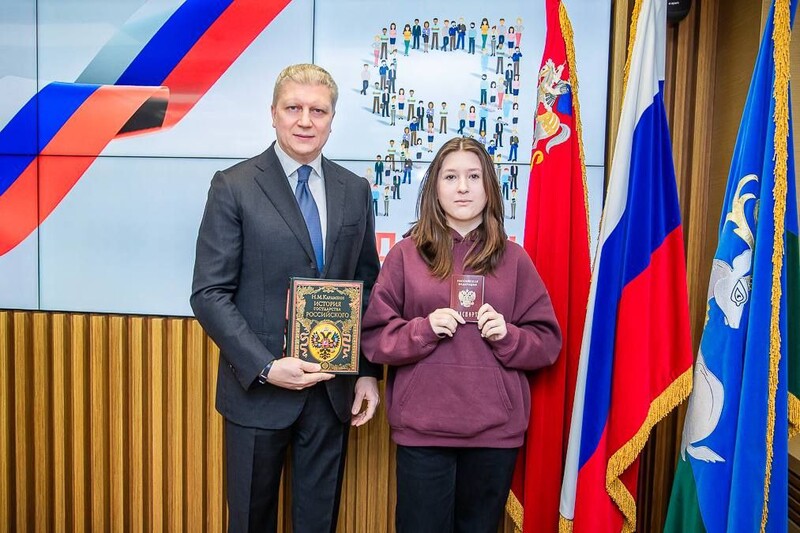 Юным жителям муниципалитета также вручили текст Конституции России и, по сложившейся традиции, подарочное издание «Истории государства Российского» Николая Карамзина. Андрей Иванов отметил, что искренняя любовь к Родине всегда начинается с изучения ее истории. Эта книга призвана вдохновить ребят на более глубокое изучение культуры и истории нашей страны.