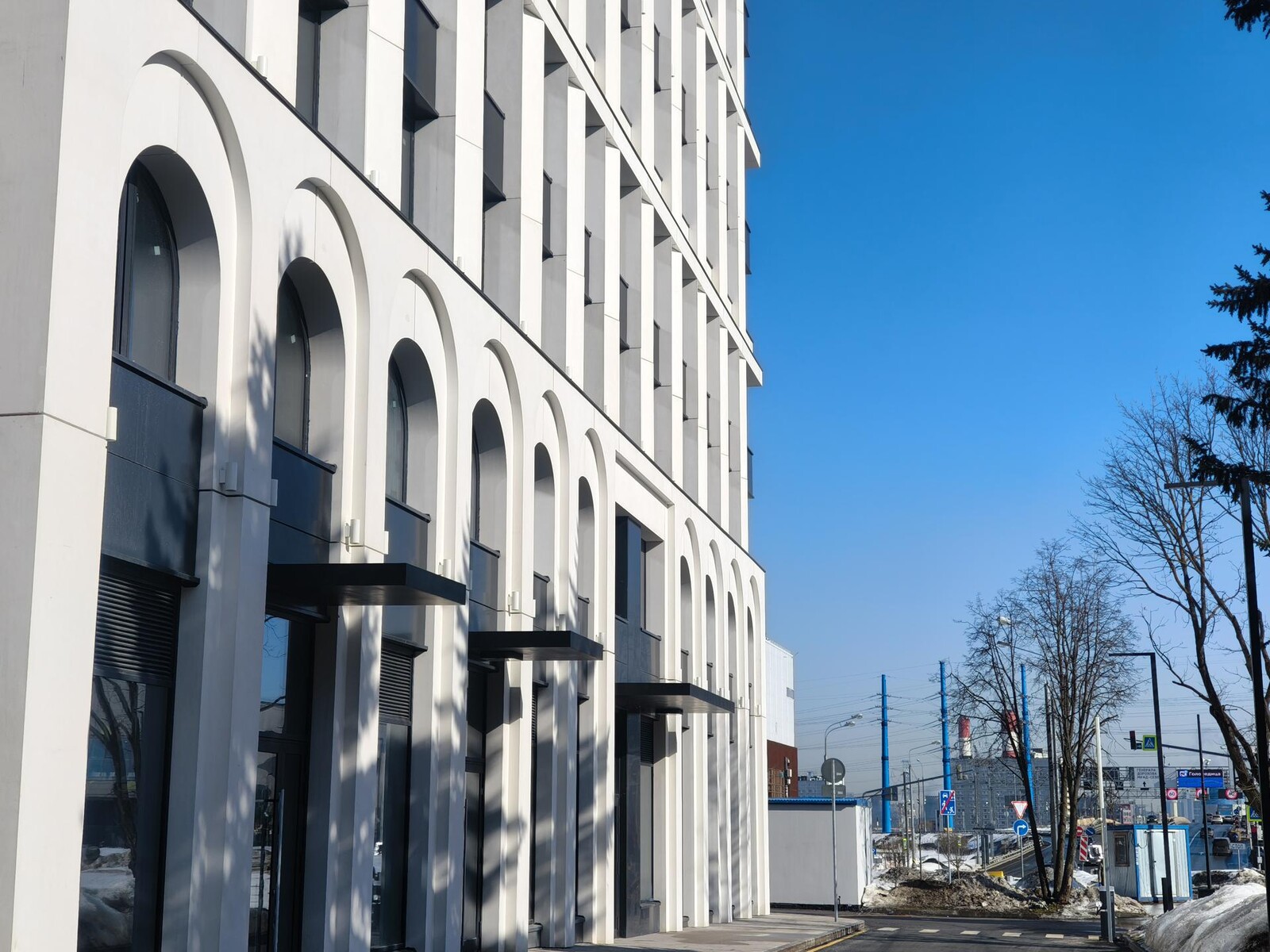 Фасады украшают арки, колонны, французские балконы. Благодаря такому подходу, корпуса выглядят изящно. Главная архитектурная особенность — это панорамные окна высотой до 2,8 метра.