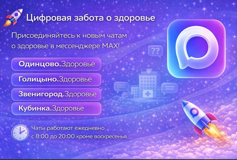 В рамках цифровой заботы о здоровье жителям Одинцовского округа предлагают присоединиться к новым медчатам в мессенджере MAX. Медицинские чаты — это прямой и оперативный канал связи с руководителями медицинских учреждений городского округа. В них вы можете задать самые наболевшие вопросы и быстро получить квалифицированную помощь.