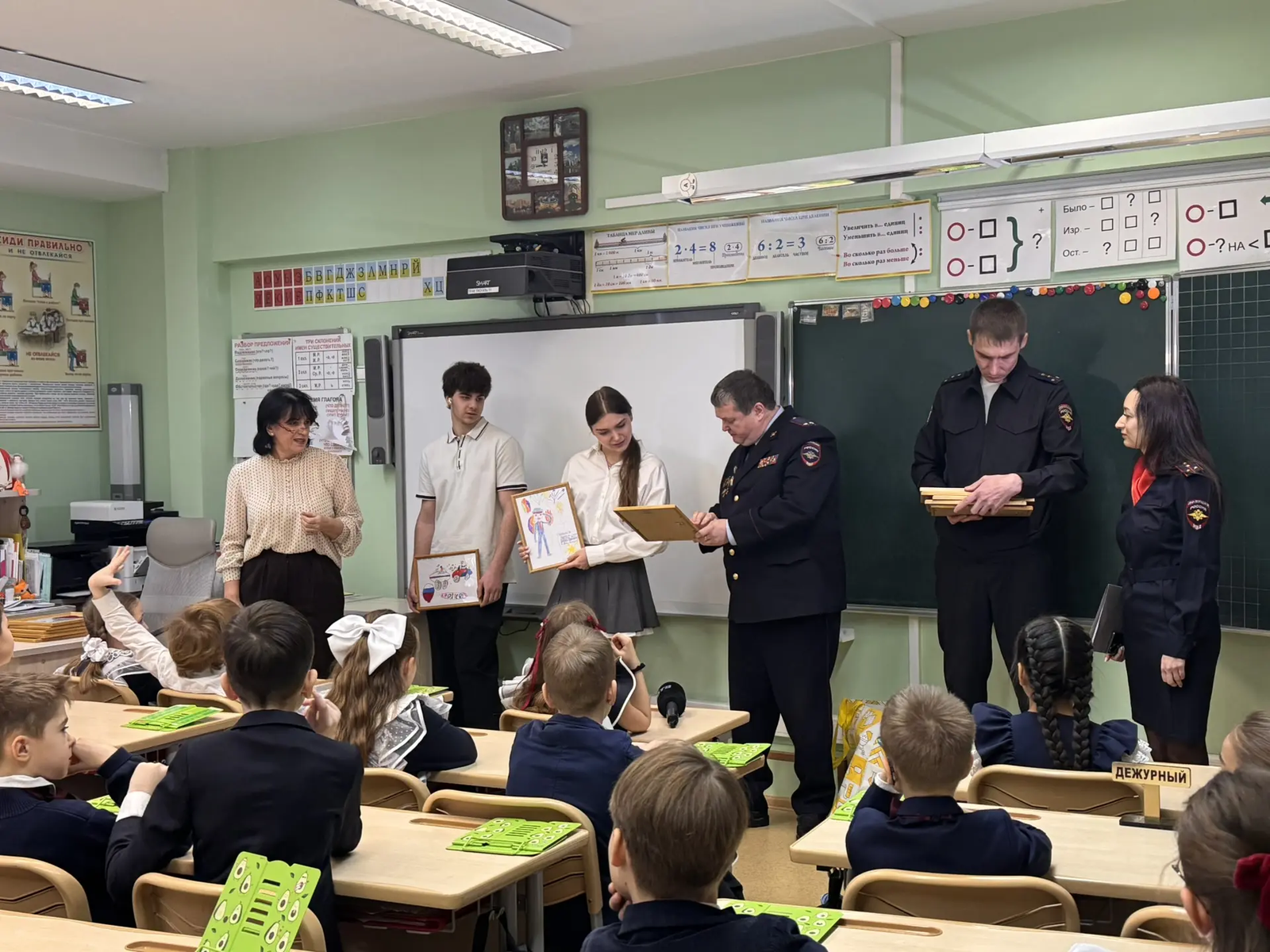 Сотрудники полиции УМВД России по Одинцовскому округу во взаимодействии с Общественным советом при УМВД 24 марта встретились с учащимися Одинцовской лингвистической гимназии, чтобы рассказать о службе и возможностях трудоустройства в органы внутренних дел. Беседа получилась познавательной, разнообразной. Ребята узнали о требованиях для поступления на службу в ведомственные вузы, социальных гарантиях, льготах, а также о различных подразделениях, специфике служб системы МВД. Кроме того, ярким и волнительным моментом стало завершение мероприятия. Сотрудники полиции преподнесли школьникам- одиннадцатиклассникам рисунки, которые они создали несколько лет назад. Эти работы посвящены работе полиции. Стражи порядка сохранили детское творчество, чтобы сегодня показать и вручить их авторам.