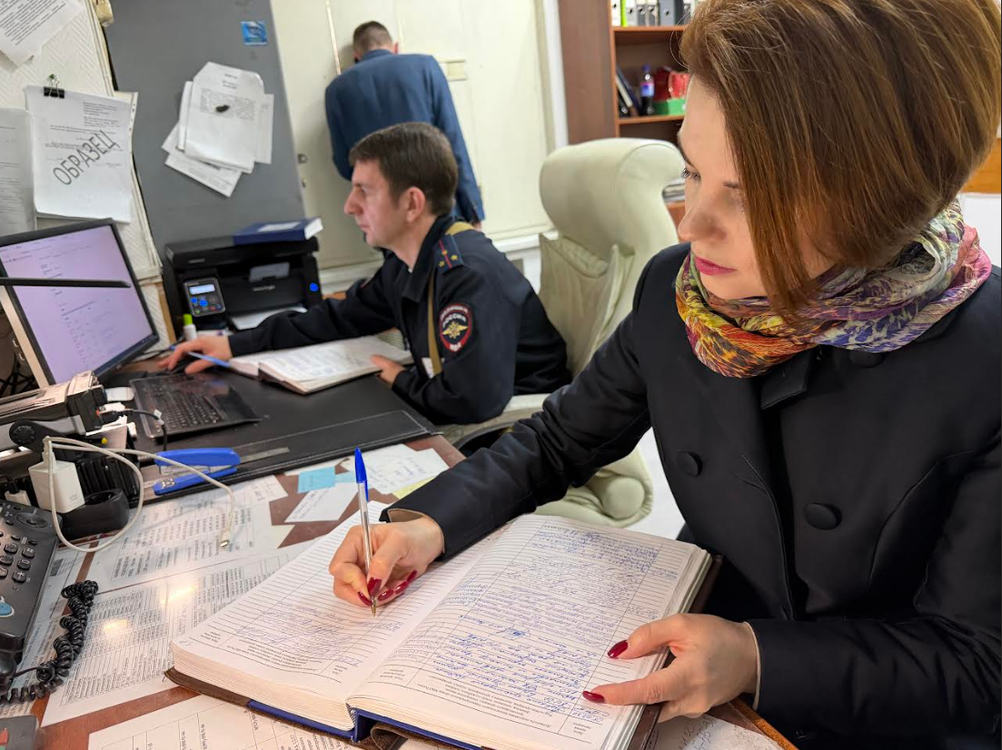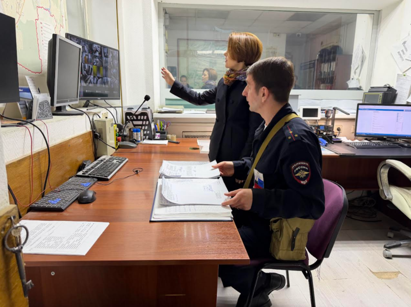 Начальник смены Дежурной части ознакомил общественницу с порядком регистрации поступающих сообщений и заявлений граждан. Она проверила чистоту в помещениях для задержанных лиц, отметила наличие актуальной информации на стендах, а также техническую оснащенность подразделения.