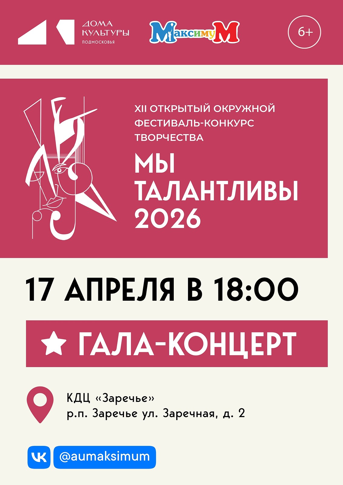 В пятницу, 17 апреля, в 18:00 в КДЦ «Заречье» состоится гала-концерт фестиваля-конкурса «Мы талантливы». Это заключительная часть творческого состязания, на которой будут представлены самые яркие номера участников. Также в рамках гала-концерта пройдёт награждение лауреатов фестиваля.