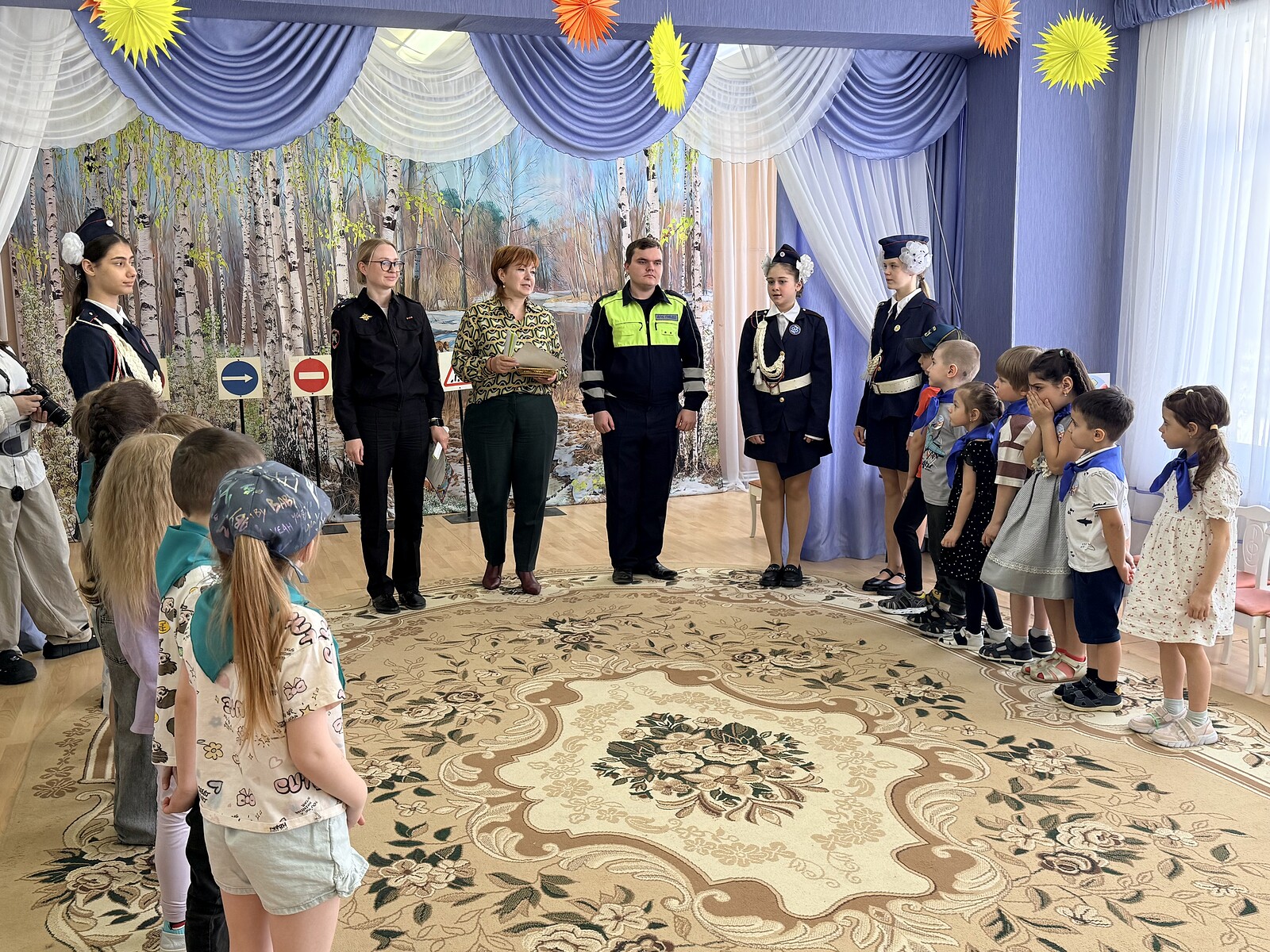 Сотрудники Одинцовской Госавтоинспекции совместно с отрядом ЮИД и окружными депутатами в среду, 7 апреля, провели необычный урок безопасности в детском саду в Одинцово. Мероприятие прошло в формате командной игры. Дошкольники активно отвечали на вопросы о переходе улицы и сигналах светофора. За правильные ответы команды получали баллы, однако главным здесь был не соревновательный момент, а понимание жизненно важных правил.