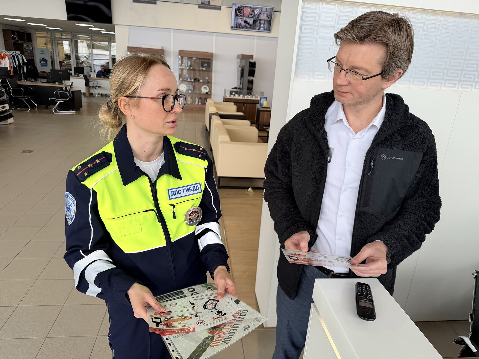 Работникам автосалона, которые часто демонстрируют клиентам технические возможности машин, напомнили о личной дисциплине за рулем. Всем участникам вручили тематические памятки.