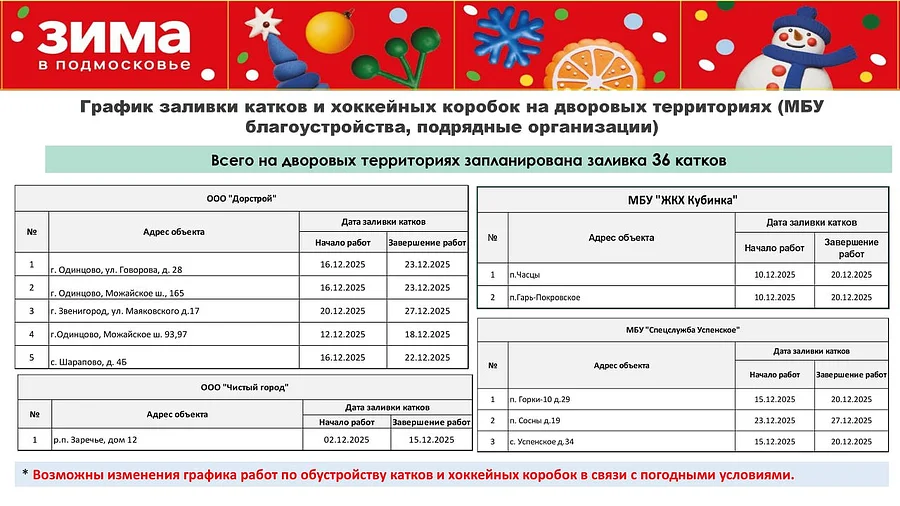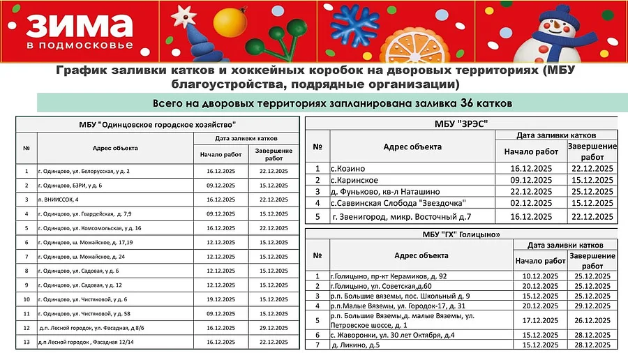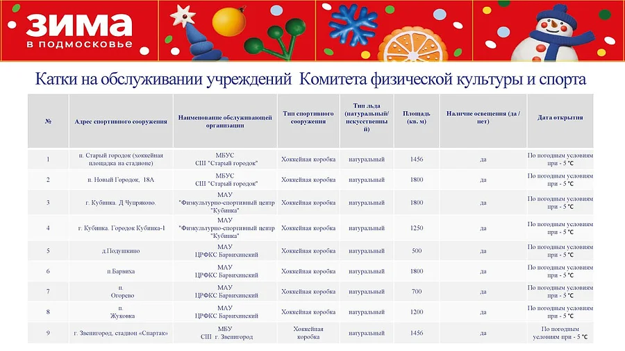 К зимнему сезону в Одинцовском округе готовят 54 катка