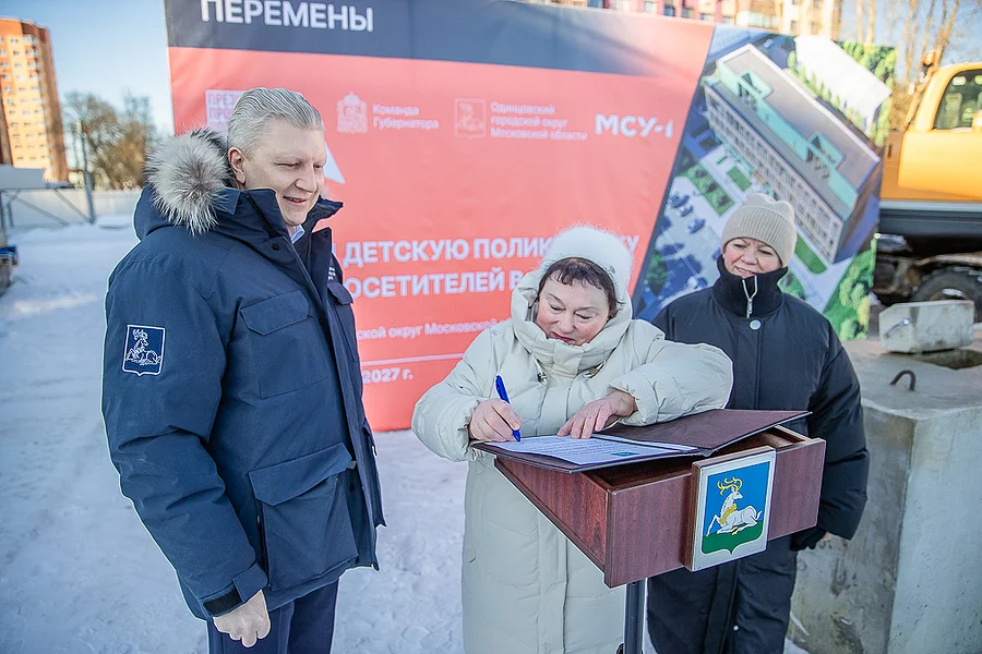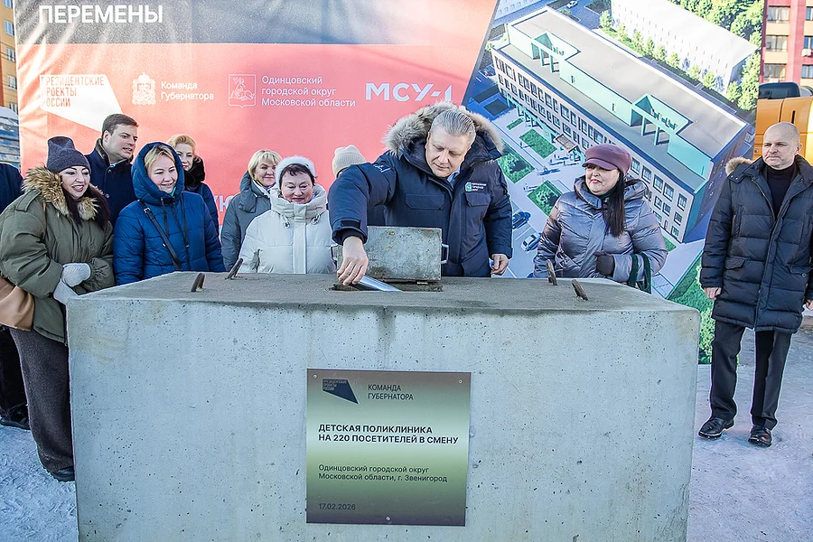 Во вторник, 17 февраля, глава Одинцовского округа Андрей Иванов вместе с жителями Звенигорода, первым заместителем председателя Мособлдумы Ларисой Лазутиной, депутатом Совета депутатов Одинцовского округа Ольгой Ермаковой и главным врачом Одинцовской областной больницы Иваном Каприным заложил капсулу времени в основание новой детской поликлиники