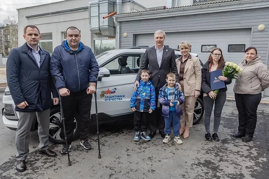 Глава Одинцовского округа Андрей Иванов вместе с руководителем подмосковного филиала Фонда «Защитники Отечества» Ольгой Ермаковой и представителями Ассоциации ветеранов СВО муниципалитета вручили участнику Специальной военной операции Алексею Гришаю ключи от нового автомобиля «Москвич-3»